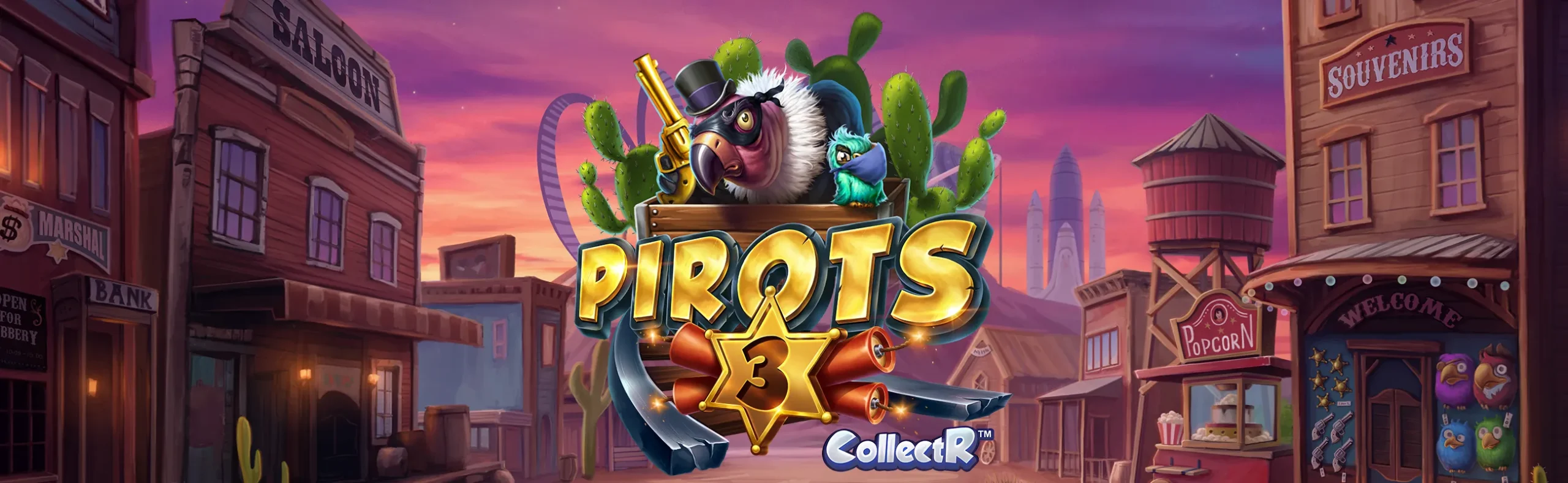 Pirots 3 ist die Wild-West-Version der erfolgreichen Pirots-Serie von ELK Studios. Statt Papageien oder Dinosaurier sammeln hier vier Cowboy-Piraten Edelsteine. Die bewährte CollectR™-Mechanik bleibt erhalten, während das Setting in den Wilden Westen verlegt wurde mit authentischer Western-Atmosphäre.