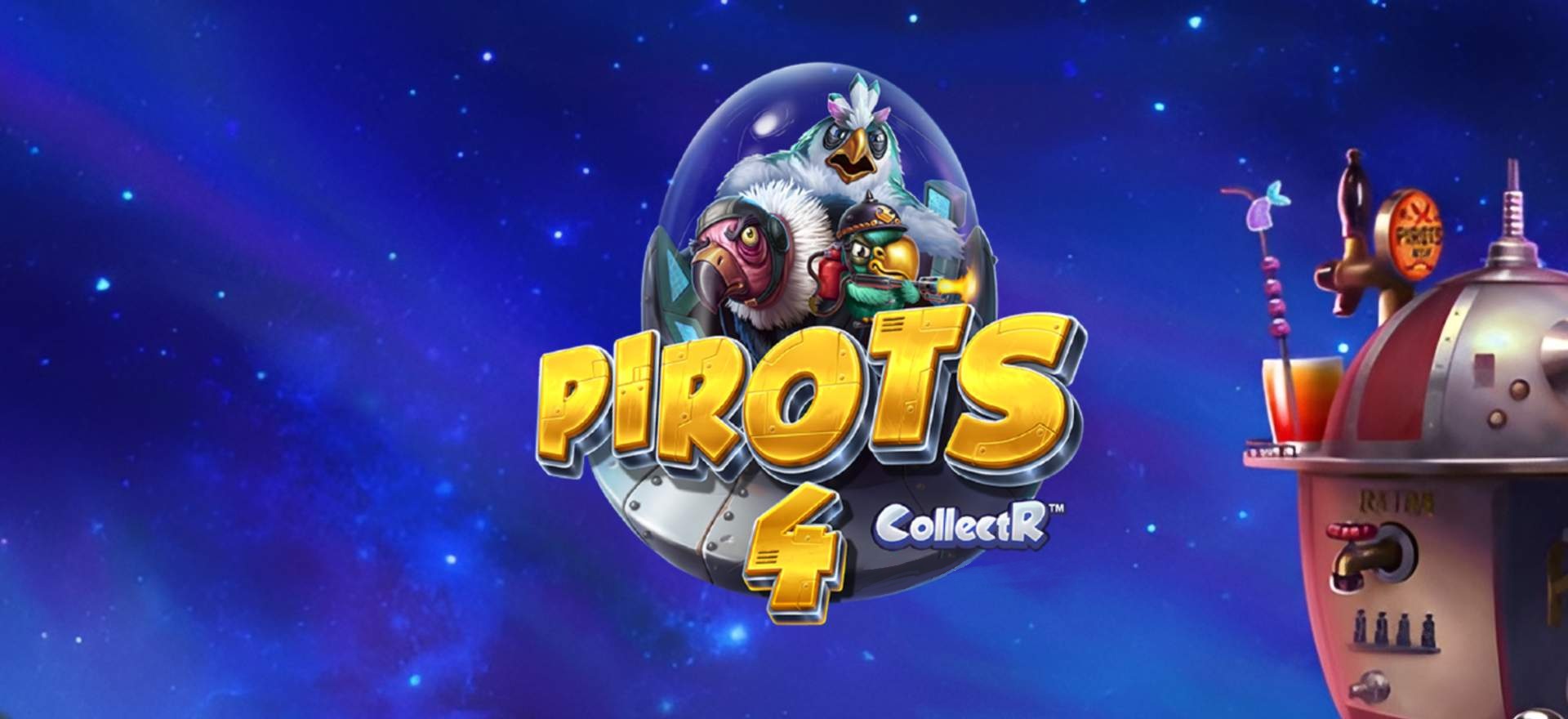 Pirots 4 ist die Weltraum-Version der erfolgreichen Pirots-Serie von ELK Studios. Statt Papageien, Dinosaurier oder Cowboys sammeln hier vier außerirdische Piraten Edelsteine. Die bewährte CollectR™-Mechanik bleibt erhalten, während das Setting in den Weltraum verlegt wurde mit futuristischer Atmosphäre und intergalaktischem Design.